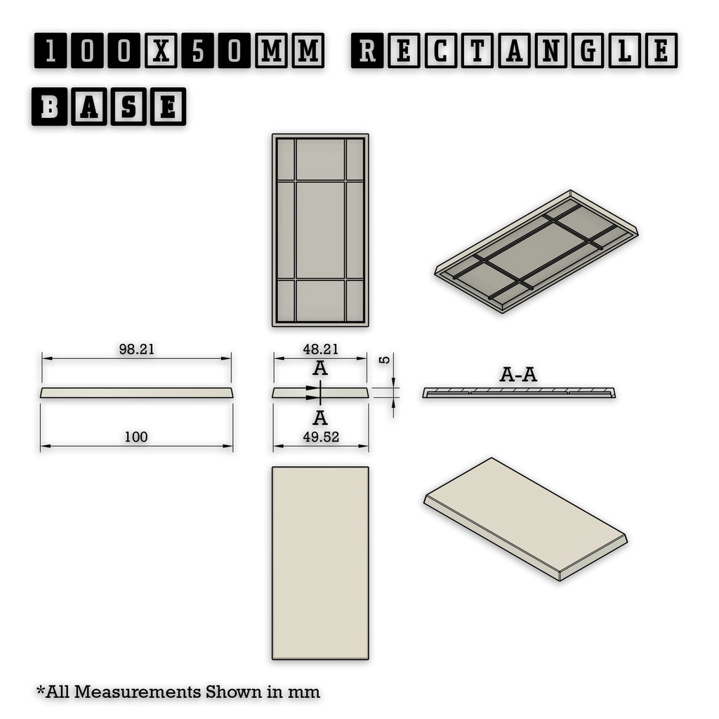 Transform your wargaming experience with our premium 100x50mm rectangle bases - a crucial component of the Open Base System (OBS). Engineered with 2mm reinforced walls and crafted from superior ABS plastic, these bases provide unmatched stability and seamless integration with OBS movement trays.