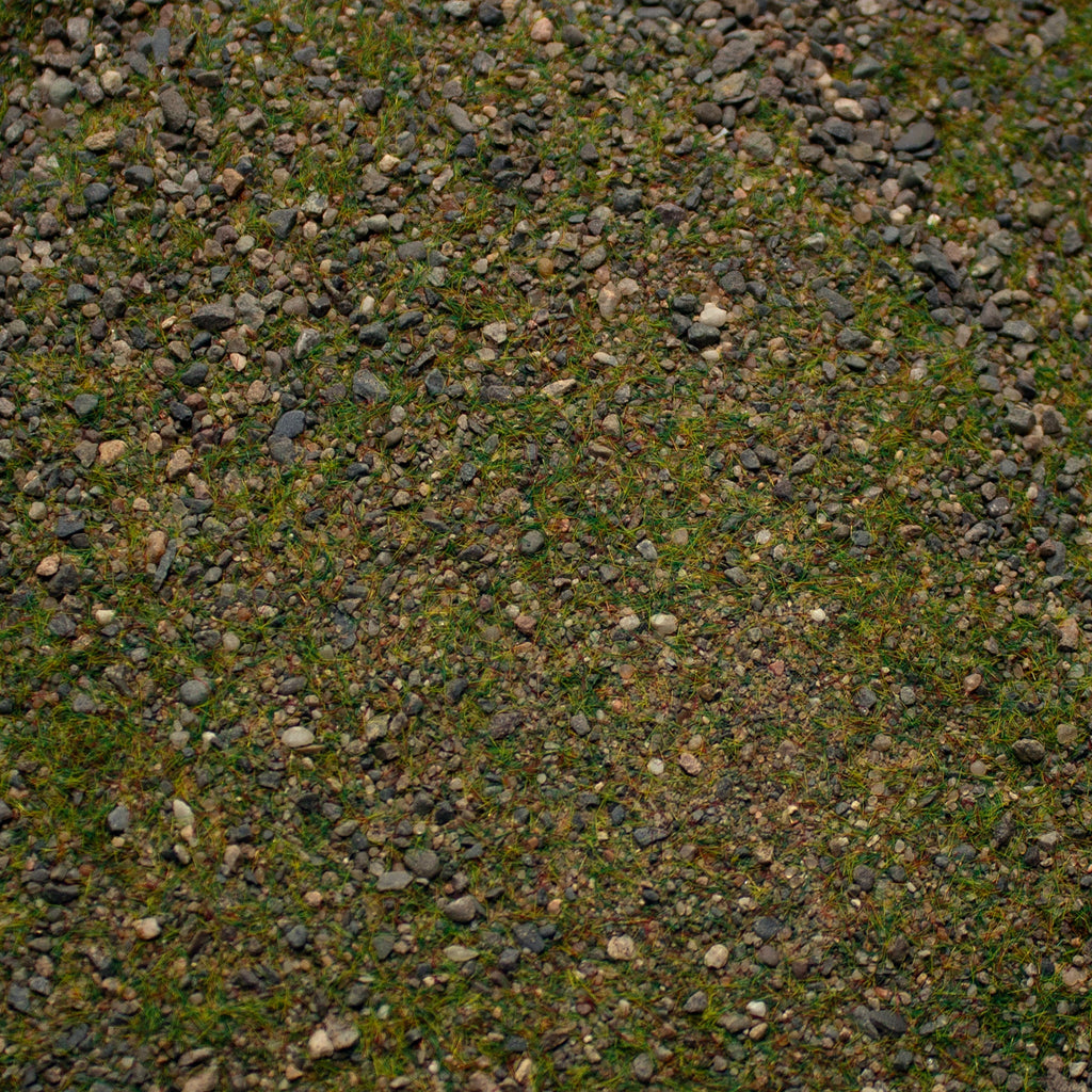 - Custom hand-mixed mixture of sands, gravels, foams, static grass, sawdust, and aggregates