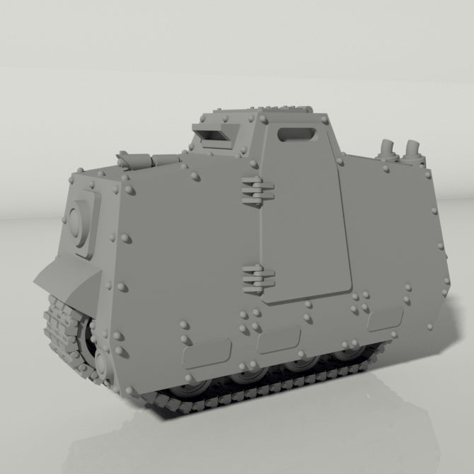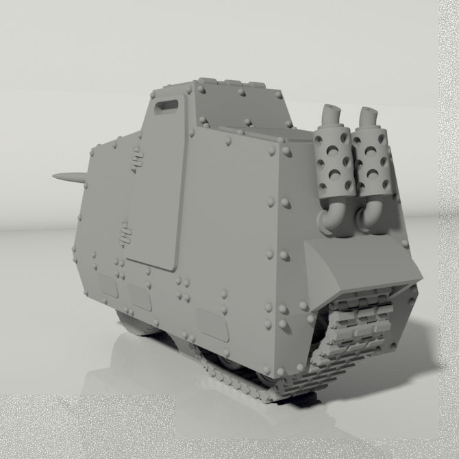 Crafted meticulously to stand as a formidable proxy for the discerning Rough Rider commander, each bike boasts an arsenal including an Explosive Lance and a menacing front-mounted laser pistol. The detachable headlamp adds a tactical edge to your nocturnal skirmishes but can be replaced with another weapon of your choosing, ensuring that your battle strategy is as unique as your army. Choose from a variety of wheel configurations – the full-track, half-track, or a daring 3-wheel design – to overcome any terrain and outmaneuver your opponents. The front wheel's articulation allows for dynamic steering, bringing your tabletop maneuvers to life.