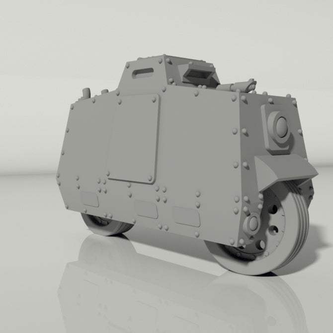 Unleash the might of the Rugged Rider Armoured Battle Bike on your tabletop battlefield and lead your miniature army to victory with style and ferocity! Designed with the passionate wargamer in mind, this set of 2 or 5 battle bikes is the perfect addition for those seeking to infuse their 28mm heroic scale games with a touch of brutalist, industrial charm.