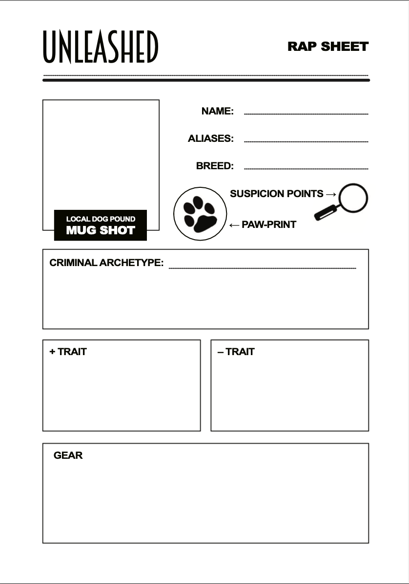 Additionally, your doggos have two traits related to their breed (positive and negative) as well as a criminal archetype, both of which can help or hinder you mechanically.
