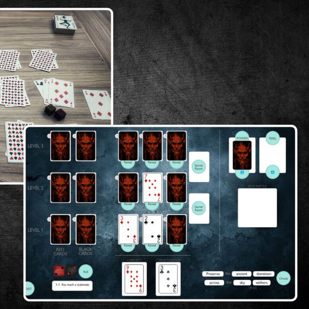 All you need to play Wraithound is two six-sided dice of different colors, a standard deck of cards (jokers included), up to 2 friends (optional) and about 2 hours for a full mission.